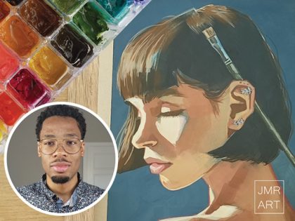Jordan’s work primarily focuses on portraiture, although he is interested in continually exploring new ideas and subject matter. He works primarily in traditional water-based media such as gouache and watercolor. One of his goals is to help others realize that is never too late to pursue their artistic dreams, no matter where they come from or when they started.